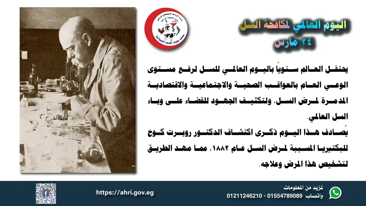 يُصادف هذا اليوم ذكرى اكتشاف الدكتور روبرت كوخ للبكتيريا المسببة لمرض السل عام 1882، مما مهد الطريق لتشخيص هذا المرض وعلاجه.